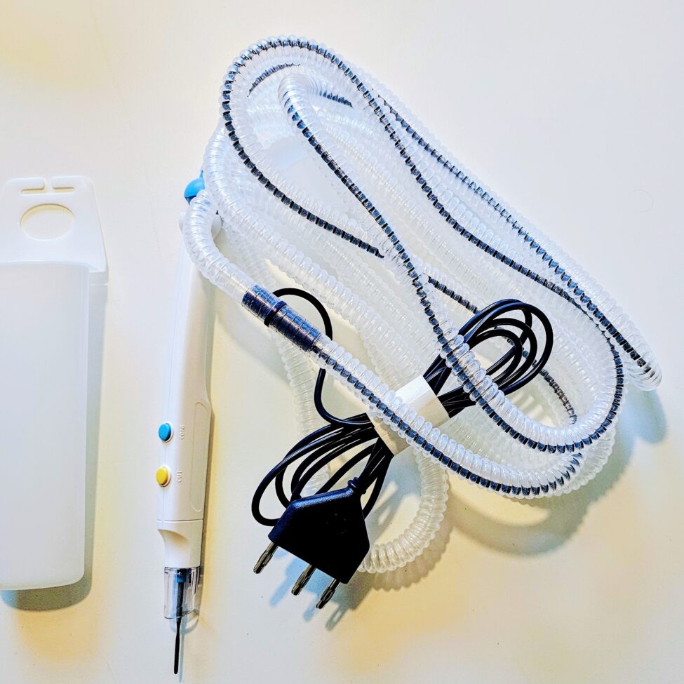 Diatermihåndtag med røgsug coatad knivelektrode